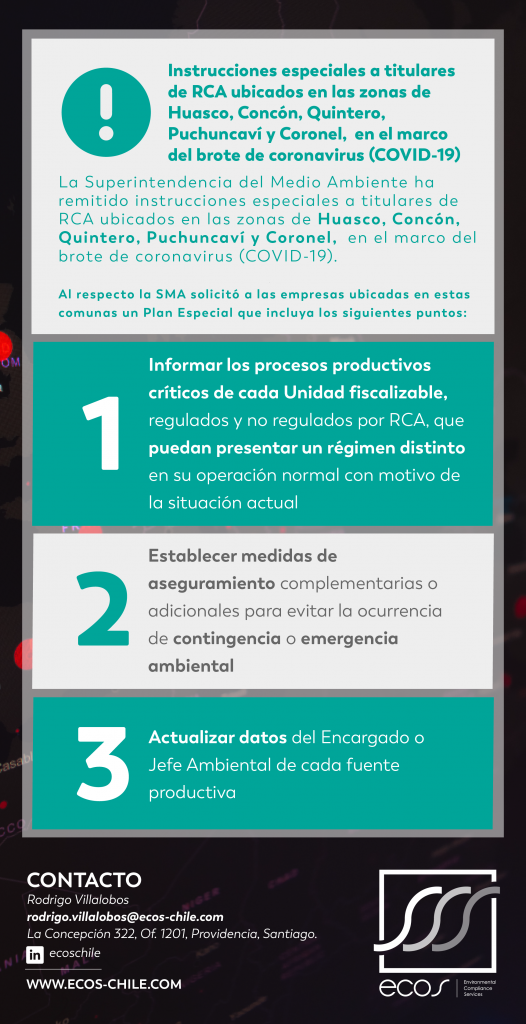 #ECOSInforma I Instrucciones especiales a titulares de RCA ubicados en las zonas de Huasco, Concón, Quintero, Puchuncaví y Coronel, en el marco del brote de COVID-19